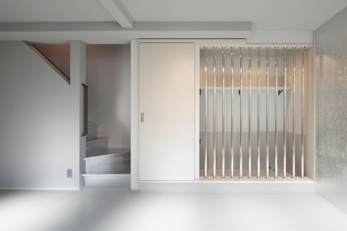 ダイニングルームの一角には給排水も可能なワンちゃん専用のお部屋をつくり、ペットと共生する家を建築しました。