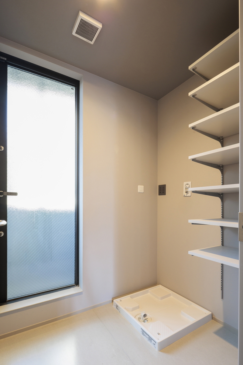 キッチンの近くにユーティリティルームを設け、家事動線を考えた間取りに。